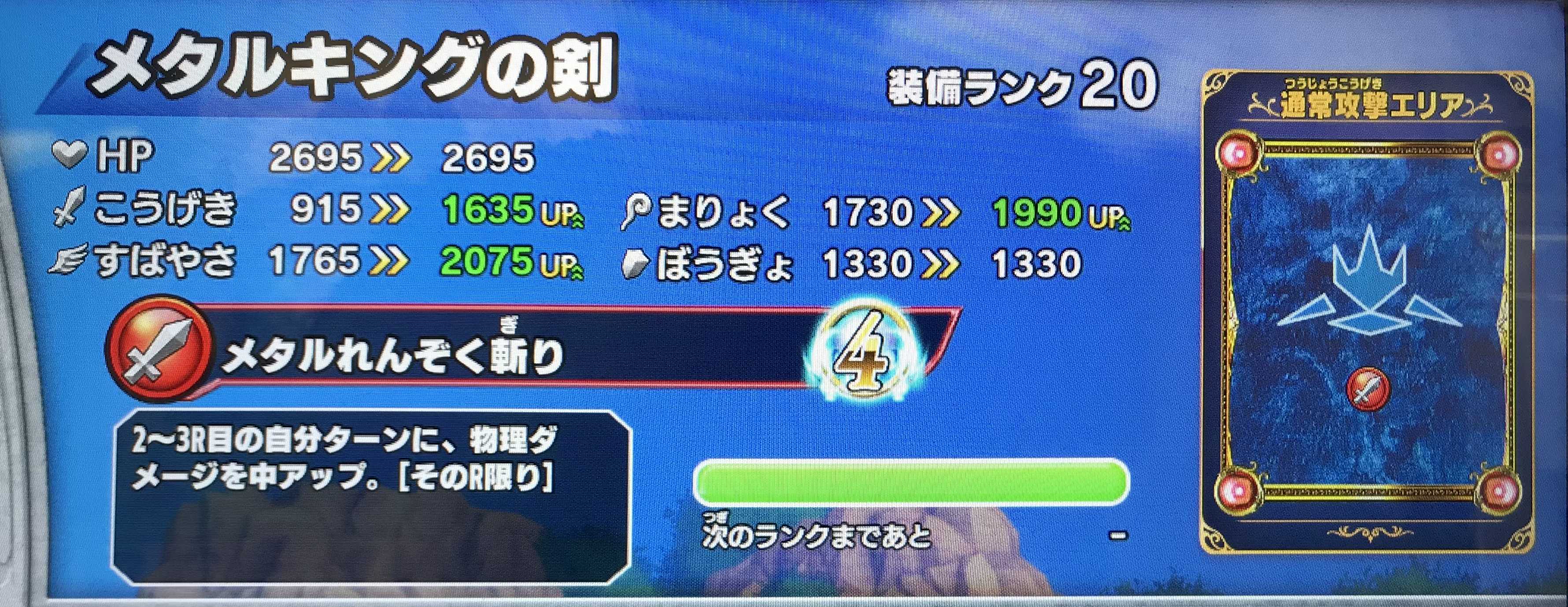 クロスブレイド真の1位であったクロムさんの提案もあるみたいだし、運営もゴニョゴニョ言ってないで少し寄り添ったら?まさか通信障害は運営の責任は1ミリもないんで・・・とか思ってないよね?オリハルコンの腕輪の対応も遅い・・・遅すぎる。モタモタしてないで腕輪の宝箱ゲットコードを公式サイトで公開しなさいって。コードスキャン版の冒険の書はどうなったのかな・・・新システムに移行するならテストを何度も繰り返してチェックしないと・・・見切り発車はいけないよ。 さて、その不具合多発の新冒険の書セットですが、宝箱ゲットコードは何がドロップするか情報がなかったので試しにスキャンしてみると・・・いま「ダイの剣」なんて・・・これって固定なのか分からないけど、いずれにしても誰得?ちいさなメダルはちょこちょこ装備に変わるようになったけど、この既にランクMAXである装備も経験値に転換される訳で、貯まりに貯まった経験値はどうしてくれるんだい?案の定、真5弾になってもマイ勇者のレベルが動かなかったけど、経験値が1億を超えてもまだ貯まるってことは、この先何か経験値を使うイベントがあるから貯まるんだろう? ところで「夏のヒロイン大集合杯」ですが、優勝でメダルがもらえるのはいいとして、これは真3弾のメダルトーナメントもそうだったけど、X3で優勝してもメダル1枚、XSで優勝してもメダル1枚ってのはどうなのかな。回戦の途中でドロップするメダルがXSだと多いってのはあるとしても、XSの優勝だとメダル10枚もらえるとかなら「頑張った甲斐がある」って思えるんじゃ?で、この「夏のヒロイン大集合杯」のサバイバルトーナメントだけど・・・優勝でもらえるのが『メダル4枚』ってのがね(笑)。X3がメダル1枚、X2がメダル3枚、X1がメダル5枚、そしてXSがメダル10枚ならサバイバル優勝でメダルが19枚もらえて、ゴメちゃん装備の交換を考えても皆嬉しいよね。でもってトーナメントやってみて驚いたのは・・・このサバイバルトーナメントに「水着」って出て来ないとは・・・通常トーナメントでひとつ獲ってしまえば別にそれ以上は要らないけど、サバイバルやれば水着が4種いっぺんに揃うのでは?と思ってただけに、「水着獲るならX1~X3をやらないとダメ」というのはちょっとセコイんじゃないかい?