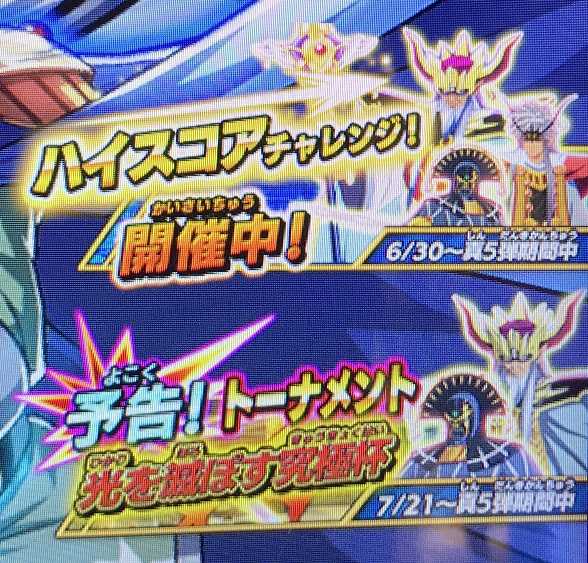 クロスブレイド今日はコークオンのスタンプ目当てで少し遠出をしましたが成果は無し・・・あと3つ。そしてついでにスコアタを少々。ライオンをマァムに変えて3ラウンドクリアパターンでハイスコアを少々更新。バーンたちにキズナ必殺撃つときにグッドガードとか出るから3ラウンドクリア失敗かと思いきや、敵は倒れてくれました。今後2ラウンドクリアに挑戦するかですが、ハイスコアチャレンジ2があるからもうバーンたちと戦う必要は無い訳で・・・(アンルシアたちと戦うハイスコアチャレンジ2ありますね。魔勇者アンルシア&ネルゲルと戦う追加トーナメントも)この画面を見る限り、スタート位置の右に見えるステージは「メタスラチャレンジ」なのか?近日開放って書いてある場所は・・・21日にいきなり開くのか?しかし、WEBデイリーが23日、24日ということを考えるとその後だし、7月28日からというのが現実的かも。そこから後半戦で、メタスラチャレンジが8月31日までということで、真6弾(最終弾?)は9月1日稼働開始というのも現実味を帯びて来たんじゃないか? さて、木曜から始まる真5弾CPですが、よくよく読んでみると、真5弾や旧弾混合台であっても「過去弾カード購入キャンペーン」のように左右どっちのシリンダーを買うか選べるようで。これだと無駄に真5弾or旧弾を買う必要がないからあ~んしん・・・かと思いきや注意が必要です。往々にして台の左上にある弾の紙札と画面の弾表示はあべこべの場合があるし、画面の弾表示が正しいかと言えばそうでない場合も。つまり実際カードが出ないと分からないんですが、真5弾と真5弾CPの混合台の場合、新規GRが出て来ないとそれまでどっちがどっちだか分からないという・・・CPパックを買ったはずが1万円使っても新規GRが出なかったから返金せよ!等のトラブルがないことを祈ります。カードを買うモード以外だとCPパックの方からしかカードが出ないようだし、とりあえず混合台に対する嫌な予感はだいぶ解消されました(^^)。