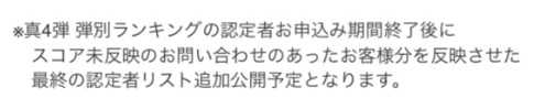クロスブレイドやはり真4弾の弾別ランキングの認定証申請に係る告知が来ましたが、ランキングを修正する気などどこにもないような・・・昨日運営にメールしました。「クロムさんという人から問い合わせが届いていると思いますが、クロスブレイド真4弾の最終日に叩き出したハイスコアが未反映扱いされて弾別ランキングに反映されず葬り去られた件について、修正した弾別ランキングの再掲載を求めます。また、オリハルコンの腕輪について、ランクMAXにしてもらえる件はどうなったでしょうか。そしてコードスキャン版冒険の書の不具合について、公式HPでの説明を求めます。」アミューズメント事務局から回答が来ました。『この度は、知人の「クロム」様のハイスコアが弾別ランキングに反映されていないとのことで、申し訳ございません。本件に関しまして、大変恐れ入りますが、イベントページの注意事項にも記載しておりますように、マシンの通信状況によりデータが反映されない場合があり、その場合も、ランキングの追加公開や該当者以降の順位の繰り下げなどは致しかねるものと伺っております。そのため、ご希望に添えかねる可能性もございますが、今回お客様から頂戴した内容は、担当部署にも申し伝えさせていただきました。反映が可能な場合などは公式サイトで告知させていただきたいと存じます。また、「オリハルコンの腕輪」の不具合の件につきましては、現在修正対応を進めており、修正完了次第、公式サイトにて改めてお知らせさせていただきます。ご迷惑をおかけしており申し訳ございませんが、今しばらくお待ちくださいませ。なお、あわせて頂戴している、コードスキャン版冒険の書の不具合とは、恐れ入りますが、どのような事象となりますでしょうか。』何にも分かってない事務局・・・あれやこれや、全くもって期待は出来ないですね。期待は出来ませんが待つしかないですね。待つしかないですが・・・待ちきれないので!非公式ランキング画像ではありますが、一足早く・・・『クロムさん、真4弾弾別ランキング1位おめでとうございます!』 さて、明日はSPカードをもらいにゲーセンに行かなければなりませんが、プレイはどうしようかな。どうしようかなとか言いながら、カードガム3のレオナをカードケースに収めた私です。あ、一応水着トーナメントでもサバイバルやって優勝カップ獲っておこうかな。全トーナメントのサバイバル優勝カップを集めても何もいいことはないだろうけど。