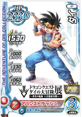 クロスブレイドさんま御殿はアニメ声優大集合で関さん出てましたがハドラーのひと声もなく・・・ま、日テレだし仕方ないか。 さて、池袋のダイ展については前に記事にしましたが、つい最近になってようやく入場者にSPカードがもらえることが告知されました。こういうイベントでプロモ配布は当然と言えば当然だし、早く告知したら良かったのに。でも、もしかしたら前売りが芳しくなく(コロナのせいもあるかな)、これはやはりプロモ配布しないとダメかなと少し前に判断したかもね。で、このSPカードは30,000枚用意してるんだとか。ダイ展示は8月11日~28日の18日間ですので、1日平均1,600枚配布するつもりみたいで・・・無料イベントじゃないし、そんなに来るのかな。グッズ付きの前売り券が3,000枚であることを考えても、実際のトータルの入場者はそれくらいを見込んでいるんじゃ?SPカードもひとケタ違う気がするというか、3,000枚しか作ってないとかあるかな。このロゴ入りプロモを大量に余らせても他で配布出来ないから仕方ない訳で・・・結局何を言いたいかというと、SPカードをゲットしたい人は早めに行った方がいいかもね、ってことです(^^;)。