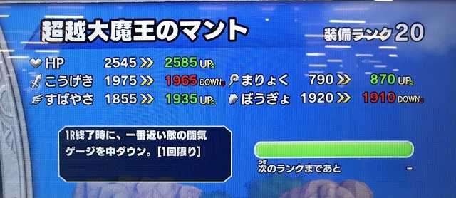 クロスブレイド超1弾稼働記念ゴメちゃんスタンプラリーですが、稼働4日目でスタンプが4個になり、金の装備ゲットまでリーチとなりました。まあ、間違いなく明日ゲット出来ます。昔ゲットした「金のパプニカのナイフ」「金のドラゴンキラー」に続く金色装備で、1個だけで装備ランクMAXとなるものですね(ランク1なのに・・・)。今回、「金のダイの剣」「金の竜の騎士の大盾」「金の魔法の闘衣」が手に入るということで、これにゴメちゃんヘッドを装着したら『全身金ピカ』ですね(^^)。あ、「金の魔法の闘衣」ってゴメちゃんヘッド同様「見た目変更アイテム」なのか!だからイチオシ報酬に出て来なかったんだな。 今日は店に行ってスコチャレやりましたが(他にやること無し)、明日スタンプラリーが終わったら17日のストーリー開放までやることがないですね・・・無料コインゲームも必要ないし、スコチャレも「何をどうしたら・・・」は掴めた気もするから?あとはデイリー大会の24日&25日にプレイすればいいし。17日のストーリー開放で腕輪はランク10になるはずですし、残りのストーリー開放は29日のコレクション2稼働開始後でしょうね。ま、コレクション2に向けて、無意味にゲーセンに行かないで小銭貯めるとしますかね(^^)。