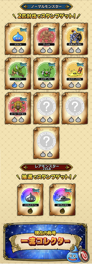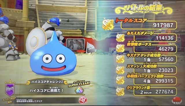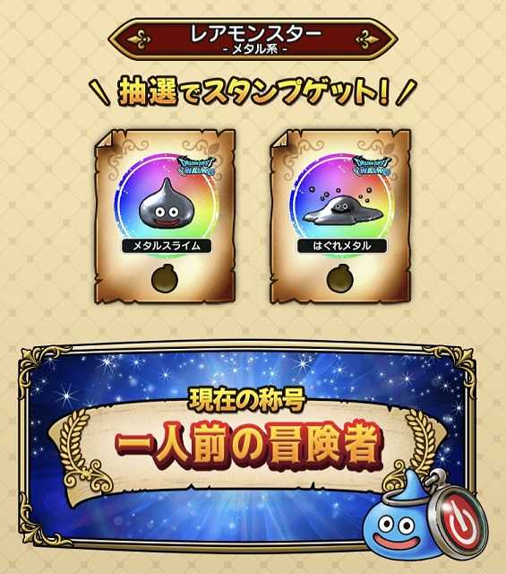 今日からドラクエウォークとコークオンのコラボが始まりました。スライムやドラゴンといったモンスターのスタンプが、そのモンスターごとに指定された自販機で通算2本買うともらえます(同じ自販機でなくてもOK)。レアモンスターとしてメタスラとはぐメタがいるんですが、これは指定自販機で1本買った後、まず戦うことになるんだけど、戦ってももちろん奴らは「逃げる」こともあるからスタンプゲットの壁は高い・・・高いはずなんですが・・・なんと一発ではぐメタのスタンプをゲット出来ました(^^)。このコラボキャンペーンは来年4月までありますし、12種のモンスタースタンプをコンプするためにクロブレ的にヒマな週末などやること(指定自販機を見つけて飲み物を買うこと 笑)が出来て良かったです。また同時に「ひと月に1万歩」歩くとスタンプがもらえるイベントもやっていて、こちらは楽チンで楽しめそうです。 クロスブレイドさて、ミストマァムとシクレを組ませてスコチャレをやってきましたが、ここでランキング見てて「お!」という武器とカードがあったのでいつものマネマネプレイです(^^)。ツメの代わりにヤリ使いました・・・そう、あのイワクつきの「メタキンのヤリ」ですよ。このスコアは15&16連打でしたが、どうしても1戦目が16連打にならなかったですねぇ。そしてカードが届いたので、明日はまたハイスコア更新を狙います!