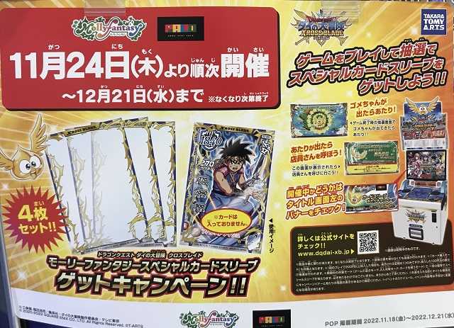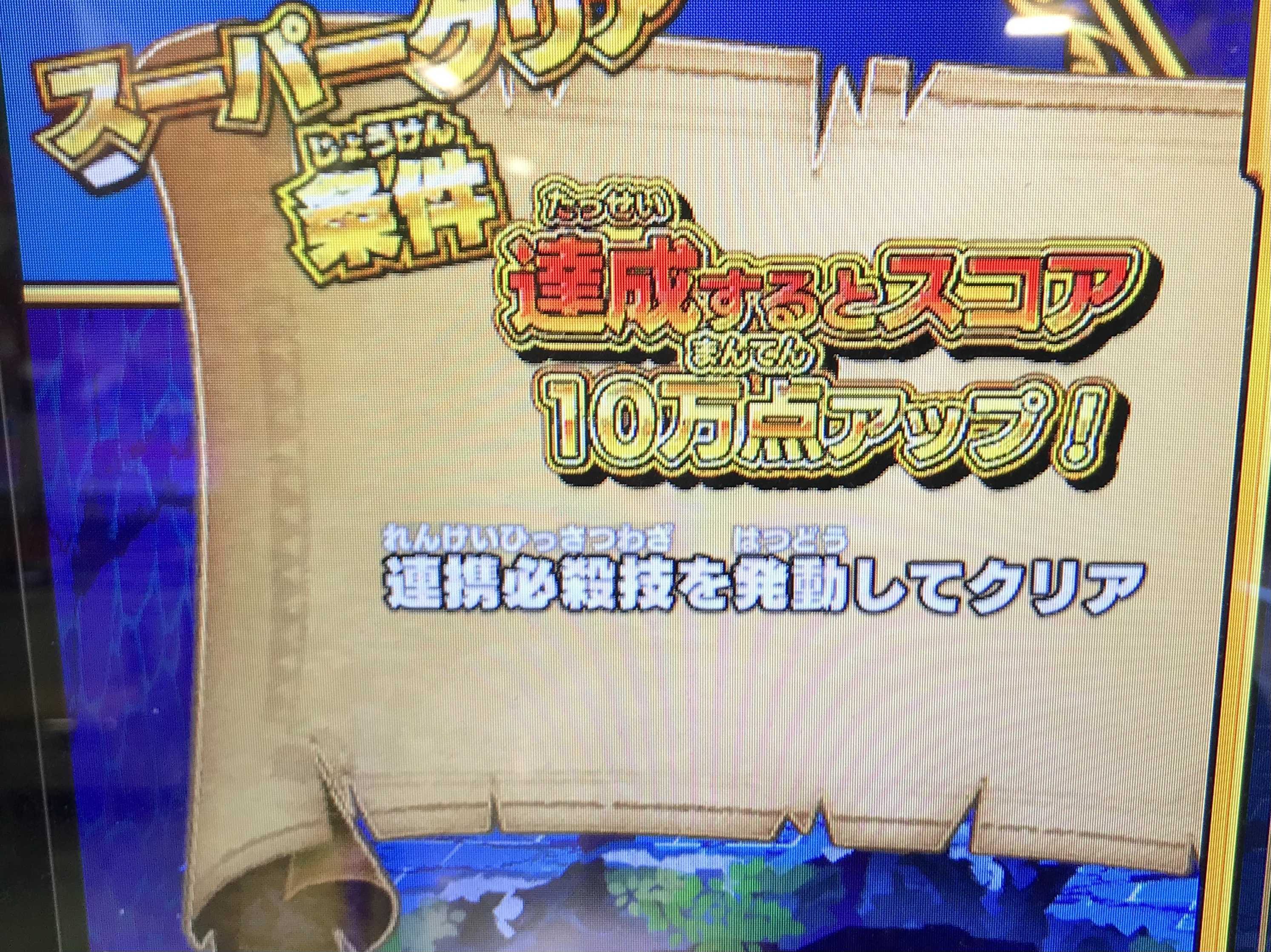 クロスブレイド今日はスコチャレでいろいろ試してきました。2ラウンド6必殺を決めるのに、ポップじゃなく「アレ」を使ったらうまく行くのか?とか、「あくまのツメ」じゃなく「ロトのつるぎ【超】」を使ってみたり・・・敵はうまく動いてくれないし、そうなるともうこちらからは攻撃も仕掛けずゲームを終わらせる。100円入れる→即負け→ゴメちゃん出ず・・・時間がかかる連コか!って何度か繰り返しているとようやくファンファーレとともにゴメちゃんが!スリーブを1枚もらったし、もう帰ろうと思ったラストワンプレイ・・・スコチャレ1のスコアを超更新するスコアが出てくれました(^^)。 魔影パーティはこれくらいにしておいて、あとは2ラウンド6必殺だけど、スコチャレは1日ワンプレイだな。そして何もイベントもないまま12月22日稼働の超3弾を迎えるんだろうか?トナメ6は?メイロの交換所は?
