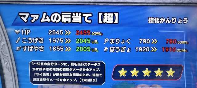 ジャンフェスのメーカーブース「東映アニメーション」の情報ですが、『トリコの展示』って一体何???クロブレなんかよりめっちゃ気になるぅ!(笑) ところでコークオンのドラクエウォークコラボですが・・・なんとメタスラスタンプも一発でゲット出来ました!おかしいなあ、難易度高いはずなんだけどなあ(^^;)。ノーマルモンスターのスタンプも3つ集めて、いまはあとさまようよろいを集めればいいということで明日スタンプをゲットしたいと思います。1万歩歩く方は間もなく完了で、ミズデーモンのスタンプを近々もらえるでしょう。でも一番下の10個目のスタンプは何なのだろう??? クロスブレイド今日はDGR真・バーンを使ってスコチャレやってみたんですが・・・意外と使えない?やはり「こうげきアップよりダメージアップ」という鉄則は今も変わらず。ということで相棒をダムドに戻し、そして武器をヤリから「てつのツメ」に変えました。必殺をひとつ増やしてハイスコアを更新しました。面倒臭いことせずに「楽に弾別100位以内」をモットーに、これからも少しずつスコアを伸ばして行こうと思ってます(^^)。