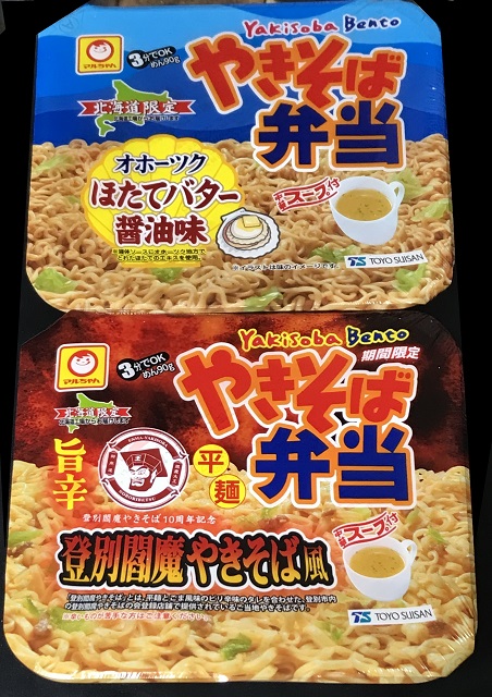 北海道民のソウルフード「やきそば弁当」に新商品が!オホーツクほたてバター醤油味登別閻魔やきそば風の2商品です。早速買って、登別閻魔やきそば風を食べてみました・・・辛い!でもほどよい辛さなので、疲れててシャキッとしたいときなんか食べるといいかも。でもって私はマヨとか混ぜちゃって、少しまろやかにして食べてみると・・・これまた美味しい(^^)。 北海道を除く全国の皆さん!北海道に来る機会があったらお土産に「やきそば弁当」を買って帰ってください。感動すること間違いなし!