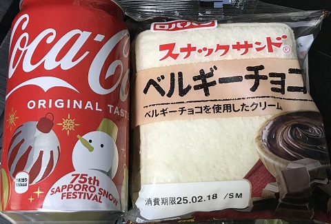 そうさ、俺だって・・・ええ、今日の昼飯用に買ったサンドですが何か。お供のドリンクはスタンプ2倍(5と9の日)のコーラ!雪まつりデザインとなっております。で?全国各地でコークオンのイベントをやってるのに、北海道はどうしたんですかね・・・北海道はドリンクを自販機で買う人が少ないのかな・・・もうスタンプイベントやらないのかな。 さて、王将戦第4局第1日目は藤井王将と永瀬九段、五分五分で終わりました。明日決着です。防衛なるか、それとも永瀬九段が1勝とするか楽しみです(^^)。