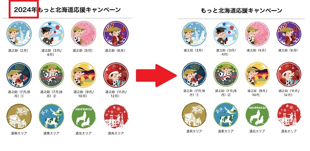 コークオンひとつ前の記事で書きましたが、北海道応援キャンペーンは過去のスタンプの使い回し・・・それでも、2025年のキャンペーンですし、スタンプの新しい枠が出ていると思いきや!ちょっと前まで「2024年」って書いていた『去年の枠』のタイトルから、右のように2024年という表記を削除して枠自体も使いまわすという!!!本日、道央エリアのスタンプをゲットしたんで、右のスタンプ枠の道央エリア(赤いスタンプ)の所持数が4つになりました(他のエリアはまだ3っつ・・・しとしとぴっちゃん、しとぴっちゃん♪)ひどいね。手抜き・・・そりゃどんどんコークオンから道内のユーザーが離れるのは当たり前だろうに!