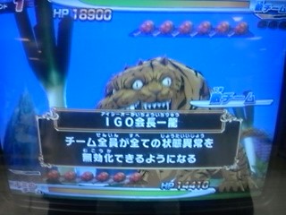 早速対戦ですが,タイガーのHPが18900で,「なんだ?楽勝?」って思ったら・・・