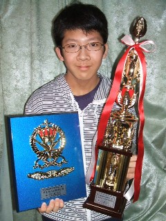 『学生名人』を称える盾とトロフィーが昨日届きましたので,記念撮影です(^^)。