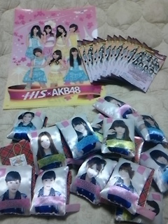 港まつりでは旅行会社HISの出店があり,そこのストラックアウトで高得点を出した息子が,非売品のAKBのクリアファイルをゲットしました。