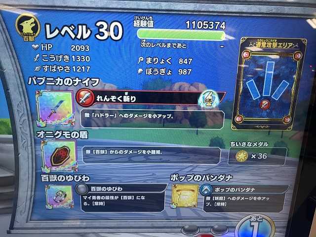 既にMAXの装備も候補にありますが、まずは「ポップのバンダナ」によく出てもらって、あとはアバンのメガネにも期待したいところでしたが・・・