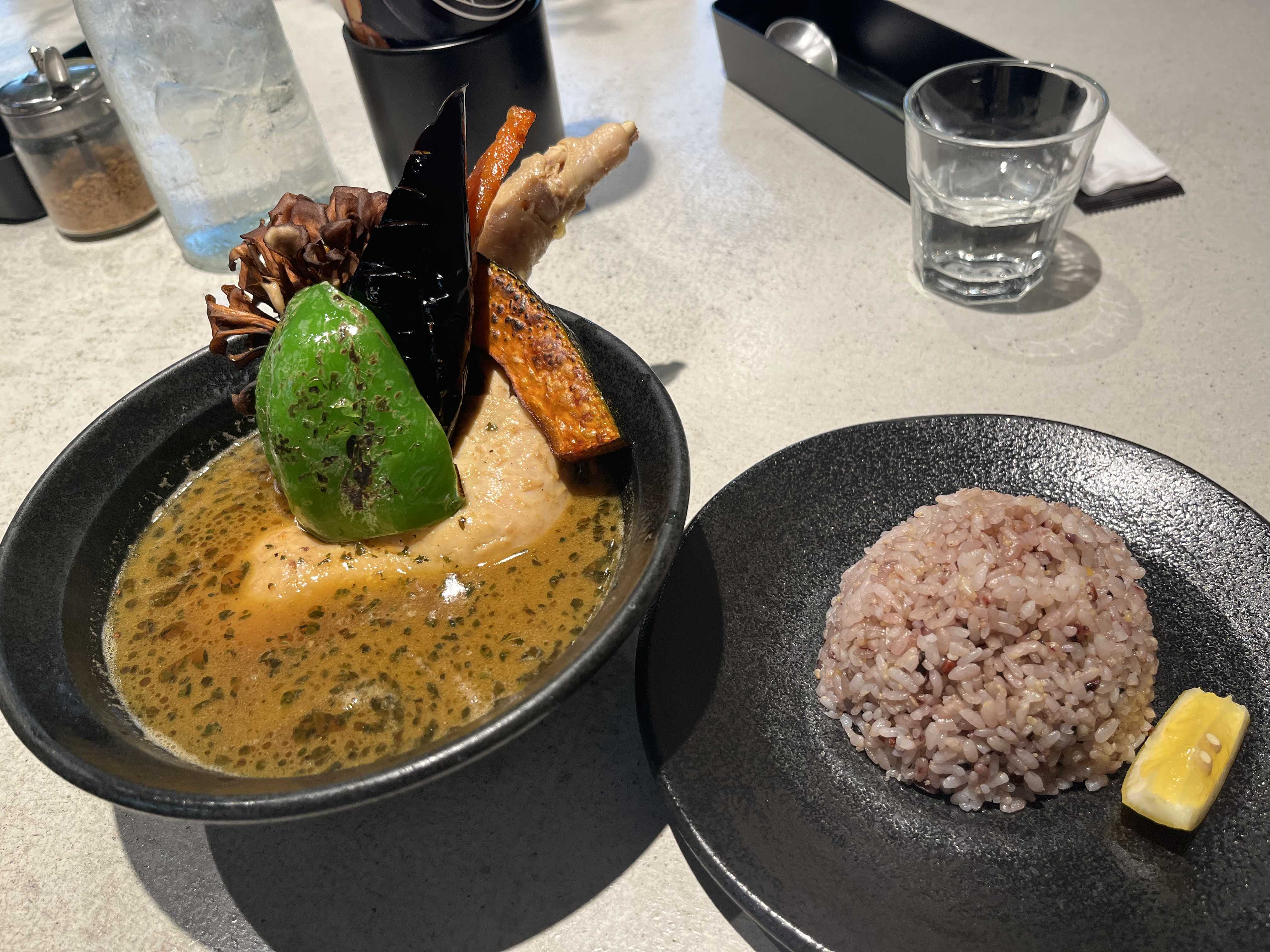私はチキンスープカレーとライス200gを注文。