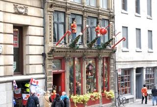 今朝はクルーズ船、北米唯一の城塞都市であるケベック州の州都、ケベックに到着しました。船からケベック市内を見渡すと、崖の上に大きなお城の様な 建物が見えます。ケベックは大きな街で見所が一杯あるので、船を降り早めに行動開始しました。今が丁度紅葉の見頃時、ここでやっと見事な紅葉が見られました。 ケベックの町は世界遺産にも登録されている歴史ある都市で、旧市街にはアッパー・タウン(崖の上)とロウアー・タウンがあります。先ずはこの街のシンボルとなる、崖の上に建つ豪華なホテルの『シャトー・フロントナック』へと歩いて行きました。 ここ迄行くには散歩道となっているデッキの長い階段を何段も上ります。上迄辿り着く頃には汗ばんで来て結構良い運動になります。遊歩道になっているテラスから下を見ると見事な眺めです。セントローレンス川沿いは紅葉した木々でまるで絵画を見ている様です。私達のクルーズの他に、数隻停泊しているクルーズ船も見えました。 最初このホテルは城塞の跡かなと思っていましたが、行って見ると由緒ある豪華なホテルでした。中に入ると、歴史を感じさせるクラッシックで重厚なインテリアです。下の階にショップがあるので行って見ると、何とスターバックがあるではありませんか。勿論持参していたラップトップをオープン、最初「ネットは出来ない」と言われましたが、その内に繋がりましたよ。ラッキー、ここで暫しネット三昧。ケベックのバトルを詳しく知りたいと、ツワーに行っていたマイクと後で合流しました。 ランチは勿論フランス料理のレストランへ、ここケベックではフランス語が公用語なので、メニューもフランス語と英語両方併記されています。確か数年前にカナダから、ケベック州の独立問題がありましたが、住民投票の結果僅かの差で果たされませんでした。道の表記や周りの人の会話、全てがフランス語のケベックの街です。フランス語訛りのウエイターからサービスを受け、私は『ABASA』と言う名の始めて聞く名前のお魚を、マイクはポークをそれぞれスープ付きのランチ・セットをオーダーしました。白身の魚に乗ったソースは、サッパリした柑橘系味で美味しかったです。 ランチが終わった頃雨が降って来ましたが、直ぐに小雨に変わりその内止みました。アッパータウンのショップを散策しながらデッキを渡り、首折れ階段と言う名の急な階段を下りて、再びロウアータウンへ戻りました。階段を下りた直ぐ傍にフニクラーと呼ばれる、エレベーターが崖の上と下を行ったり来たりしているのが見えました。 丁度ここがメインストリートのプチ・シャンブラン通り(ケベック建国の際活躍した人の名前を付けた)ここには小さなブテックや、ギャラリーが並び、プチ・フランスを思わせるオシャレな雰囲気の通りです。ここでウインドー・ショッピングをしていると、水彩画の様な模様のシルク・ペインテイング専門店が在りました。店内に入ると大きさの違うスカーフや、ネクタイ等、淡い上品な色合いの品が沢山、思わず「綺麗~」と声に出してしまいました。 そして店内で目にしたのが日本の日の丸のマーク、何だろうと良く見ると『私達の心はあなた方日本人のそばに寄り添っています』と書かれていました。多分オー ナーが日本びいきなのか、それとも日本のお客さんんが多いのか、日本人としては心温まる文でした。そのせいでは有りませんが、思わずマイク用にメープル の葉の模様のネクタイを買いました。 ノートルダム教会の前の広場を過ぎるとこんな大きな壁画が表れました。ここで写真を撮りましたが、余りに大きくて全てがカメラに収まりきれません。私の隣りに立つ方が、ケベックの父と言われるシャンプラン氏です。この様な大きな壁画が所々で見られました。何しろ絵になるケベックの町並み、全部の写真をアップするのは無理なので又紹介しますね。 今回のカナダ&ニューイングランド、デスカバリーのクルーズも今日が最終日、明日はモントリオールへ到着して最後となります。 面白かったら下記のバーナー、プッシュお願いね。