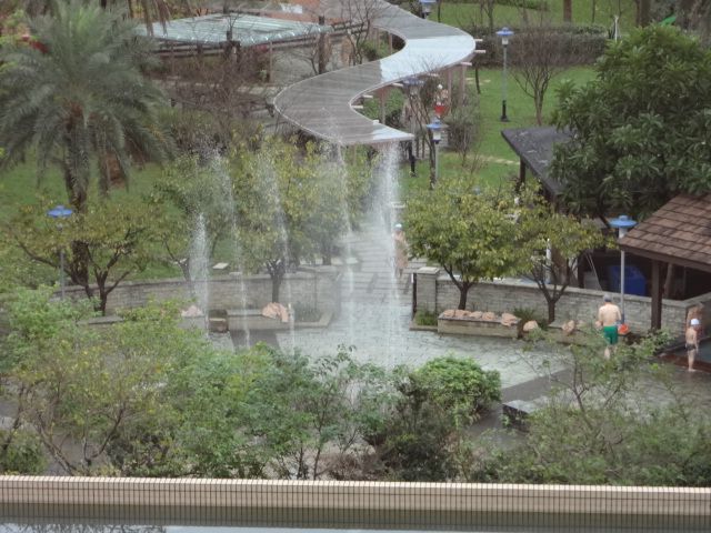 今回のリーダーシップ・トレーニング、午後からハイキングに行く予定でしたが相変わらず今日も雨で、残念ながらお流れとなりました。こんな天気が何日も続くとうんざりします。台東の方では大雨で洪水して深刻な状況の様です。ホテルの窓から見た遠くの山々、うっすらと霞がかかりこれも又風情ある光景です。 このホテルのエントランスで、2棟の建物の周辺に異なった温泉が在ります。又この付近一帯は風光明媚で、温泉地でも在るので別荘地帯となっています。 このプールは勿論温泉ですが白濁した色で、手を入れてみると丁度良い湯加減といった温度でした。水着を持って来なかったのが悔やまれます。 大きな土瓶から流れる温泉、これ又ちょっと泉質が違いました。 この下の写真が女性の露天風呂で、唯一裸で入る温泉です。丁度私が行った時には誰も居なかったので、私一人で貸し切り状態。上から勢い良く流れるのは打たれ湯で、試して見ましたが力強く、脇に掴まってないと流されます。山並みを眺めながらの露天風呂は、身も心もリフレッシュ出来ました。旦那様はお仕事で、私一人緩んじゃって良いのでしょうか? 夜は再び皆と一緒にお食事、毎回10種類以上のお料理が出るので、最後の頃には入らなくなります。その為今日は少しずつお皿に盛りました。でも今回の旅行で又確実に体重アップしたのが分かります。 今回マイクが台湾に来ると知って、デユークの娘さんがマイクにプレゼントを届けてくれました。このバッグ、丈夫な皮の手作りなのです。コンピューターを入れるのに丁度良いと、マイクとてもご満悦でした。大切に使わせて頂きます。 明日は午後一杯こちらで過ごし、夕方台北のホテルへ戻ります。この温泉良かったと思われた方、クリックお願いしますね。