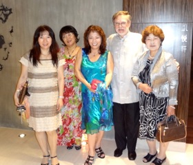 今朝は小雨の中東京に別れを告げ、香港出発の為成田空港へと向かいました。でもこの日のフライト約2時間遅れで成田を出発、それも台北でトランジェットなので空港内を駆け巡り、やっと乗り継いで香港に到着した時は、ヘロヘロの状態でした。 香港の空港でマイクが手配していたホテルのリムジンに乗り、やっと愛しの主人と一週間ぶりの再会、でもハグする時間もなく直ぐにシャワーに直行、予約していたレストランへと向かいました。 羽田から来た姉妹3人は予定通りに到着し、ホテルでやっと皆が合流出来ました。お食事したのは宿泊しているハイアット・ホテルの中華料理のレストラン、マイクが他のレストランをセレクトしておいてくれましたが、私の到着が遅れてホテル内の中華ストランに変更しました。 やはり香港へ来たからには先ずは中華料理でしょうね。前菜を頼んだら6種類も来ました。皆話しに夢中になって、どんな物だったか良く覚えていません。 このアワビと椎茸の煮込んだのは、味がしみ込んで柔らかく美味しかったです。 上のお魚一匹丸ごと、多分グルーパー(日本姪あかめ)だったと思うけど、お魚の上に香味野菜とタレで蒸したお料理で、マイクが大好きな中華料理の一つです。 私達姉妹が日本語で喋っているので、一寸押され気味のマイク、チャイナ服を着て私達を歓待してくれました。「今マイクとか言っていたけど、何んて言ったの」と、自分の名前は聞き逃せず、通訳しながらのお食事は結構疲れます。当時マイクがビジネス・デイナーをする際は、常時2人の通訳者がおり彼等が交代で、食べていたのを思い出しました。 これはロブスターとお野菜を炒めた料理です。この他に未だ数点オーダーしましたが、最後の頃はさすがに皆満腹状態、デザートのマンゴ・プリンはお部屋に運んでもらって後で頂きました。毎日行われる香港のライト・ショー、ホテルのラウンジから眺めましたが、ガラスに反射して良い写真が取れませんでした。数日中にもう一度チャレンジするつもりです。姉妹だけでの旅行も今回が3度目になります。それぞれ個性が違う姉妹ですが、言いたい事を言い合いるのも姉妹だからこそ、3日間の香港滞在楽しみましょうね。 明日はデープな香港をご紹介しちゃいますね。ブログ・ランキングに参加していますので、クリックしてくれたら嬉しいです。応援有り難うございます。