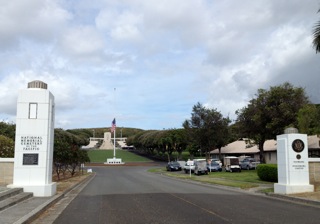 昨夜遅く、厳密には今朝の真夜中12時半頃に約10時間遅れてハワイに到着しました。昨日のデルタ航空のエアコン・トラブル、私達の様に真っ直ぐ自宅へ戻れる人は未だ良いですが、憧れのハワイに着いても時間的に他島へ飛ぶ飛行機も無く、宿泊するホテルを探すのも、皆さんさぞ大変だったかと思われます。自宅に着いたのは既に2時近く、その後時差ボケで寝れずにアン・パッキングをしていたら、直ぐに4時近くになってしまいました。そして目覚めたのはまだ朝日の上る6時前、旅行の日の出発は別として普段の生活に置いては記録に近い早起きでした。でもベランダから前方に見えるワイキキの海とダイアモンドヘッドを見て、やっとハワイに帰って来たんだと実感しました。 午前中一番にした事は、先月亡くなった友人が眠る通称パンチボールの国立太平洋記念墓地(National Memorial Cemetery of the Pacific)を訪れました。 ホノルル周辺一帯が見渡せる丘の上に建つこのパンチボールは第一次、第2次大戦、朝鮮戦争、ベトナム戦争で戦った兵士だけが埋葬される場所で、多くの日系2世の人達も眠っています。 かなり広い場所なので先ずはインフォ−メーションへ行き、何処に埋葬されているかチェックします。事務所には人は居なく機械が2台あり、そこで名前を入力して場所を調べます。直ぐにプリントアウトされたペーパーが出てきました。 最初は間違った場所に行ってしまい、ウロウロしていたらセキュリテーの人が来て案内してくれました。フロリダに行く前にお会いした想い出が急にこみ上げ石に刻まれた名前が、とても彼だとは信じたくありませんでした。でも89歳で亡くなったのだから、大往生と思わなければならないのかも。 そしてランチは友人CHIYOさんとロイアル・ハワイアンセンター内にあるサントリーでのランチでした。CDのレコーデーングも一段落してちょっと余裕ができた彼女ですが、これからジャケットの作製や最終チェックで、まだ気が抜けない状態。今度のCDは歌が入ったり、童謡のアレンジやジャズがあったりと、バラエテイーに飛んだ作品となってます。完成の暁にはブログでお知らせしますね。 今日のサントリーでのランチ、二人共鉄板焼きコースをチョイスしました。積もり積もったお話で、鉄板焼きが美味しかったかどうか覚えていない程、話しに夢中になっていた二人でした。この後ロイアル・ハワイアン・センター1階にあるアップル・ストアーへ行きPCの修理に行きましたが直ぐには直らず、結果は明日まで待つ事になりました。ヤレヤレです。夜は友人とのお食事が待っていますが、今日はこれまでにします。ブログ・ランキング、クリックしてくれたら嬉しいです。