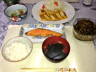 今朝も昨日同様4時半に目覚めてしまい、その後ベッドに入ったものの眠れず結局そのまま起きてしまいました。やはり一週間前からの時差ボケが継続して、今だ快復傾向にありません。フロリダからハワイへ、まだ体が順応しない内3日後に日本では、時差ボケに強い私でも体が言う事をきいてくれません。それと年齢と共に快復も遅くなる様です。 今日の東京とても清々しい秋晴れで、部屋に居るのが勿体無い程です。品川駅付近で用事を済ませた後、予定を変更して午後実家に行く事にしました。品川駅の構内はとっても広く、マゴマゴしていると人とぶつかりそうになります。昔OLをしている頃、向かって来る人の隙を見つけて、スイスイ通り抜けたのを思い出しました。 新幹線に乗って約1時間、在来線で約30分の距離にある実家は、パソコンでメールや、ネットをチェックしている内に直ぐに着いてしまいました。 今実家では震災で崩壊した気仙沼地方へのボランテア活動をしており、これ迄5回程現地へ出向き、救援物資を届けています。今回は寒くなる時期に合わせ、冬物の衣料や湯たんぽを運ぶ予定だそうです。 そんな救援活動で知り合った気仙沼の大島に住む方から、今日お礼としてカツオが一匹届けられました。そのカツオをお料理上手な姪の恵ちゃんが立田揚げと、表面を焙って生姜とタマネギに付けた、タタキ風お料理を作ってくれました。 今夜の食卓、上の二点の他に、肉じゃが、キンピラ、芋がらの炒め物、けんちん汁、お漬け物と家庭料理がズラリと並びました。世界を旅し、各国のミシュランの三ツ星レストランでも、又地元の美味しいと言われるレストランにも足を運びましたが、やはり家庭料理に叶う料理はありません。小さい時から慣れ親しんだお料理こそ、それが世界で一番美味しいと感じるお料理だと思います。だからこそどの国でも、ママの味が恋しくなるのです。 明日は紅葉が見頃となった那須温泉に出かける予定です。 ブログ・ランキングに参加していますので、クリックしてくれたら嬉しいです。