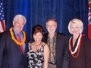 昨夜はTVで夜8時から2時間に渡って、恒例の共和党候補の討論が行われました。女性候補一人を加えた7人で、不法移民問題、税制、医療保険制度等を廻って激しい討論が行われました。 この候補者の中の一人、元下院議員の『Newt Gingrich』とは今年2月のハワイ共和党大会のスペシャル・ゲストとして出席した際にお会いした事があります。その時はVIPルームで催されたカクテルと、ご夫妻との記念撮影をしました。ブロンド・ヘアーが素敵な奥様でした。 TVで見る柔和な顔付きとは別に、スピーチは打って変わって辛辣な発言で物議を招いた事も有る方ですが、昨夜の討論会では余り目立たなかった様です。とにかくアメリカは2012年の大統領選挙に向け共和党、民主党共早くも選挙モードに入りつつ有ります。アメリカに住在する市民としては、次の大統領候補に誰が成るか興味が有る所です。 今朝のフォート・ローダデル、昨日から続いている雨が止みません。ホテルをチェック・アウト後、一旦姪のオフィスに立ち寄ってからウィンターパークへと向かいました。 2人で交代しながらのドライブですが、雨の日の運転は嫌ですね。特に前にトラックがいると、水飛沫が後車に飛んで来て前が見えなくなります。その為トラックだけは、避けたくて追い越すのについスピードを出してしまいます。 ハイウエイを北上するに従って雨も止み、オーランドに来る頃には晴間も見えました。上の写真はオーランドのダウン・タウンです。まだラッシュ・アワーには早かったので、スムーズに家路に着きましたが、約200マイル以上のドライブはさすがに疲れ、バタン・キューでした。ブログ村のランキングに参加していますので、クリックお願いね。