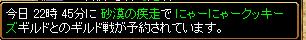 対戦日 7月26日時間 22時40分対戦相手 ランカーさんの突撃ゴリラ部隊さんです。場所 クロカンSSはこれ一枚撮る間もなく全滅負けしましたw今日の集まりは、BIS3天使1剣士1ネクロ1アチャ2WIZ11PT+天使ソロ相手は2~3PTぐらいかな?人がいぱいでしたもう 参ったとしかいいようがございませんねw突撃ゴリラ部隊様ありがとうございました。