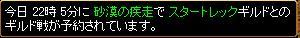 8月3日 対戦相手 スタートレック場所 砂漠の疾走時間 22時05分始まる直前でWIZ1人が落ちましたなので今日の集まりは WIZ2 剣士1 ネクロ1 アチャ1 BISor天使5 と すばらしく 火力がいません(´・ω・`)先に先制したのは放浪しかし火力不足でほぼ倒せません相手は剣士が主力の1PT+って感じですかね 武道が3人ぐらいいて厄介でした><放浪側はBIS陣がほぼ天使になり ディスペしまくってました(自分もですがw後半 相手はほぼ物資切れのようでよく引いてましたね結果 火力不足で負けてしまいました火力が集まった時にリベンジしたいですねスタートレック様 ありがとうございました。