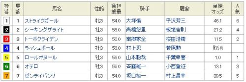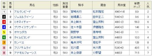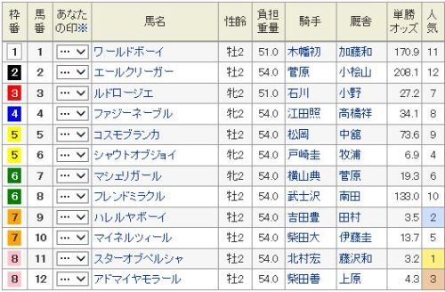 10位指名のアドマイヤモラールが新馬戦に苦し紛れに取った割には、意外と人気で好勝負期待