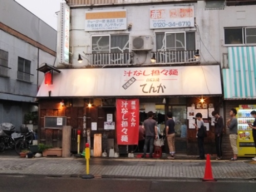 自家製麺 てんかで開店直後でしたが、行列のうえに急なドシャ降りで30分後にやっと汁なし担々麺 並@780を注文説明に書かれている通りに真っ赤かです食べてみると、見た目より辛くは無く麺はモチモチしていて、中に入っているピーナッツがいい風味に〆にスープ割りで完食です