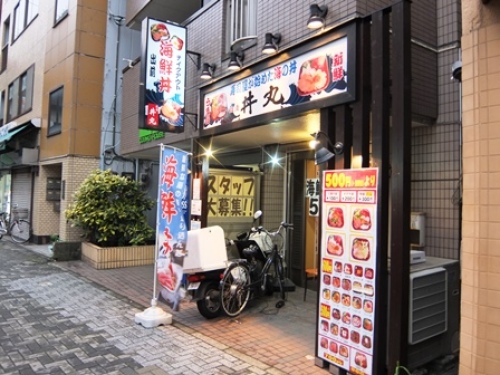 てんかの帰りに前から気になっていた丼丸 鶴見店に立ち寄り。満腹に近い状態でしたがどんまる丼@500をテイクアウトワンコインの割りにネタの種類も多く