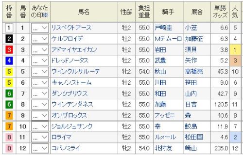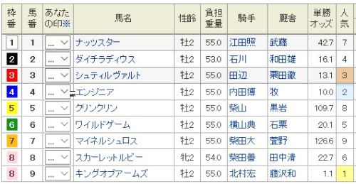 8位指名のクレマンダルザスがもちの木賞に前走は自爆なので、馬の後ろで折り合えれば