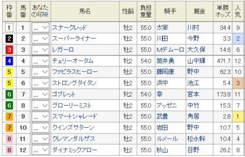 5位指名のリリカルホワイトが赤松賞に骨っぽいメンバーが揃いましたが、デビュー勝ちの舞台で