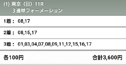 予想と人気がマッチせず、高配狙える◎ 7 アルビアーノ 流れ不問〇 17 ロゴタイプ 戦ってきた相手が違う▲ 8 サトノアラジン 距離合う△ 16 モーリス 不安は休み明け△ 5 イスラボニータ 切れ負けする買い目: