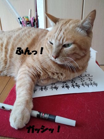 と言うわけで本日はペン字教室でした。添削をして下さっていた先生の手が止まりました。「ん?どうして最後の4文字だけ下に下がっちゃってるの?」と・・はい。そこは、秀君と闘いながら書いたところだからです。「えっと・・・猫に邪魔されたものですから・・・」と私。教室の中に笑が広がる。秀君のせいで、私は恥かいちゃったんだよっ!!でも、まあ 反省してるようだから許してあげるけどね・・