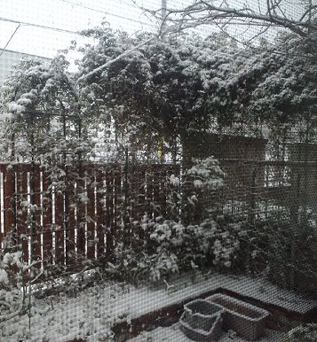 朝、起きた時、雪が舞っていました。本気で降ってるんだ・・・比較してみましょう!(笑)昨日のジャスミン。今日のジャスミン。かなり厚く雪をかぶっています。春はこんな感じだったのにね~そして、春はこんな感じだったツルバラうぅ~ん・・・今日は寒々しい~あっ・・・そろそろ剪定しないと?(汗)で、雪道の運転は怖いので歯医者さんの予約をキャンセル。キャンセルの電話をし終えた頃から急に日が照りだした。あぁ・・これなら行けた感じ?(苦笑)
