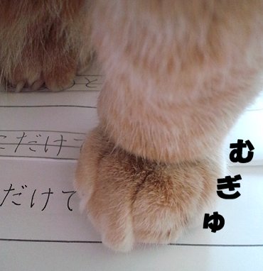 以前にも書きましたがペン字を習っておりまして、月に2回の教室です。一回目の教室は添削メインです。前月末に頂いたお手本を見て何枚か書いて持って行きます。それを先生に添削していただきます。直された部分に注意して、2週間練習をします。二回目の教室は書いていった中から提出する作品を選んで頂きます。明日が1回目の教室なので、慌てて練習をしています。(笑)6種類の作品を一通り書いて添削して頂かないといけないので。『いけない』と決めてるのは自分なんですけどね。先生は「書けないと時もあります。」と、決して生徒を追い詰めるようなタイプでは無いのですが、だからこそ自分で自分を追い詰めます。(爆)と言うか、お手本を見てお手本通りに書いているつもりなのに、同じ字が書けません。それが個性では?と、言われる筋もありますが、個性はまだまだ先で良いと私は思っています。今は、基本ですので『いかにお手本通りの字が書けるか』を目標にしています。で、先生に添削して頂くと『あぁ~ここが違うんだ~』と気付く事が出来るのです。なので、一回目の教室で自分のクセを気付かせていただき、二回目までに練習をしなくてはいけないのです。と、志は高いのに、前日に必死で書いてるって・・・(苦笑)そんな私を神様は懲らしめてやろうとお思いですか?うわぁ~~!!神様の手だぁ~~!!な 訳ないしっ!!凄い迫力ですが、秀君、神様に頼まれたの?違うんでしょ?だったら退いて!秀君は、ここにいる必要は無いでしょ?あのぉ~ちょっとぉ~もしもしぃ~もしかして、練習しなくても良いと神様はおしゃってるのですか?(違)こうして、30分は秀君に勉強机(?)を選挙されてしまう私でした。ふぅ~久々の画像の加工は、わたわたしちゃうねぇ・・・(汗)