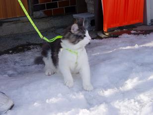 今日、はじめてちびにゃんずを雪の中に出して見ました。ガッシュベル 腰が引けてます。 ガッシュは固まって動けませんでした。 マーシャも腰が引けてます。 好奇心いっぱいのマーシャは雪にすぐ慣れてチョロチョロしました。