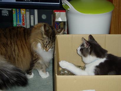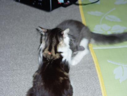 ちびにゃんずが遊んでいるところです。ヒメは見てるだけです(だから巨大化する)