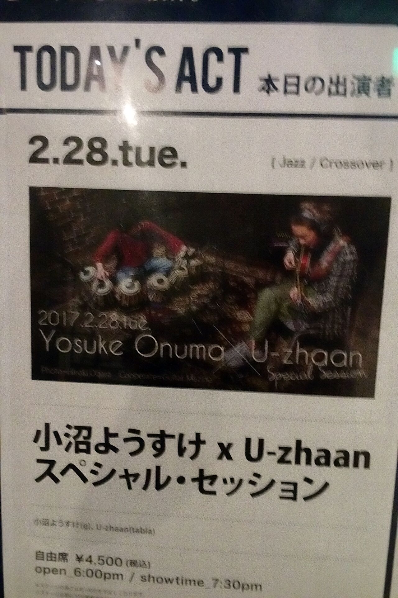 モーションブルーでU-zhaanさん!今日は小沼ようすけさんとのDUOです。素晴らしいロケーションで、ギターとタブラ。いーですねー❤