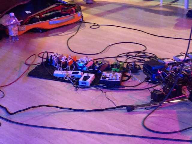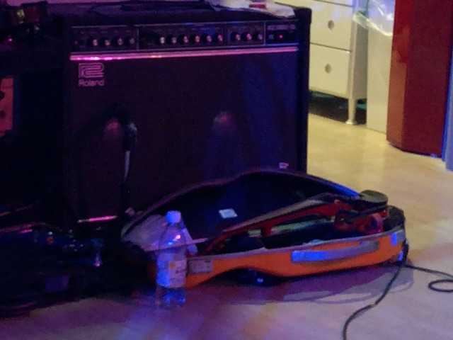 ミディアムテンポに勝井さんの重厚な音圧のバイオリンが気持ちいいほど。赤のエレキと茶色のアコースティック。