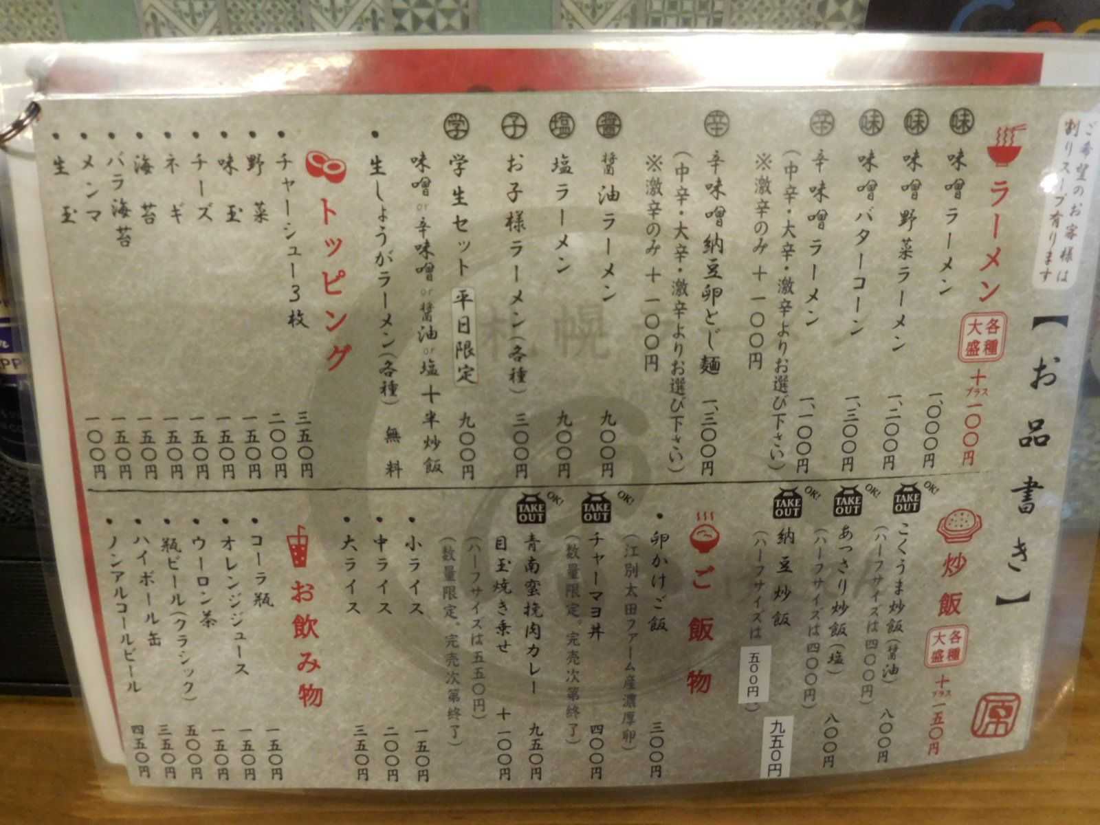 10月とは思えない暑さが続きます。そんな中、南幌の風樹にやってきました。南幌町栄町4-3 - 20定休日:火曜日駐車場はお店の裏側地図はこちら。メニューがこちら。券売機制。セルフサービスなので、番号札を渡されます。でこちら。油多めであっつあつです。にんにくのきいたスープにちょっと太めの縮れ麺がよく合います。具はねぎとしなちく、玉子にわかめ、とろっとろのチャーシューが二つ。辛味噌ラーメンがよく出ているように見受けられました。【送料無料※北海道・沖縄対象外】【代引払い不可】【ご家庭で手作りソバ打ち】めん打ち太郎 60cm 包丁付(そば打ちセット)(レシピ付)(16882-7)NHK趣味悠々 名人・高橋邦弘 こだわりのそば打ち入門 vol.2 [DVD]