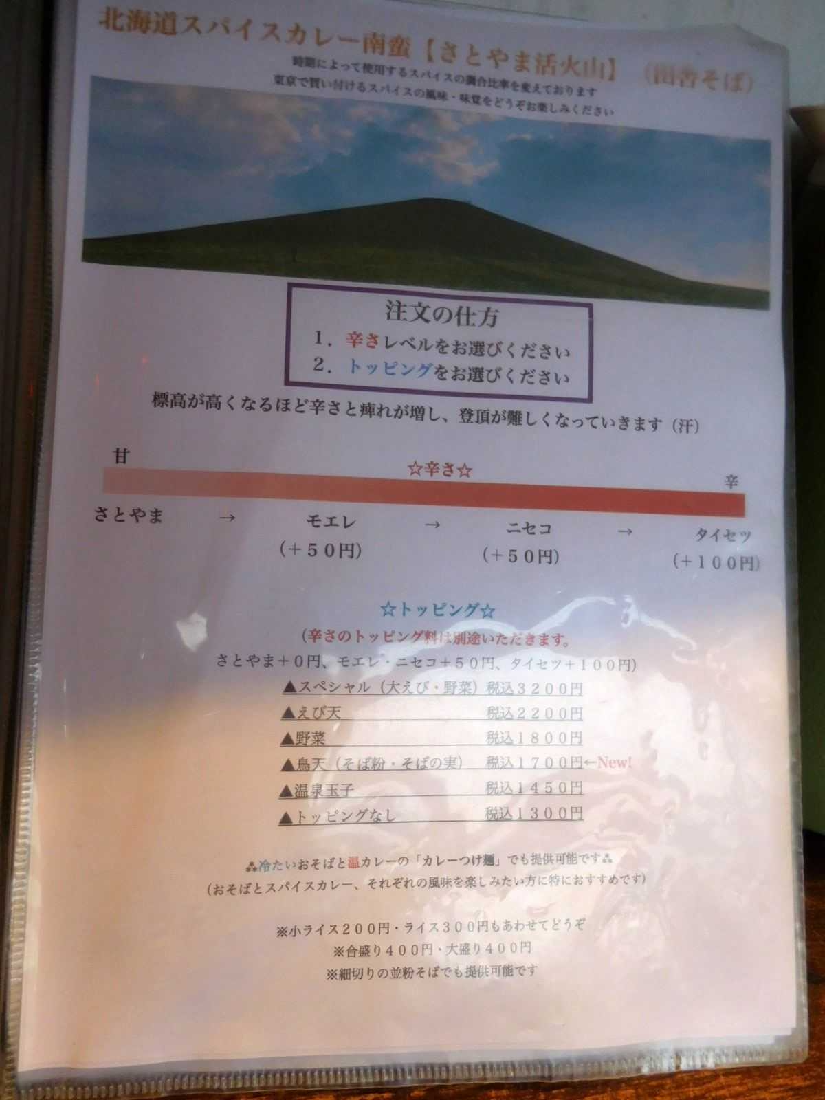 今日は雨模様の一日。道北はかなりの降水量のようです。被害が大きくなければ良いのですが。そんな中、さとやまに再訪です。前回行ったときの様子がこちら。メニュー再掲。今回は間違いの無いように、メニューのカレーつけ麺を指しながら「つめたいのを大盛りで」とオーダーしました。からさはニセコです。でどきどきしながら待つこと10分。でこちら。良かった・・。無事せいろが届きました。思ったとおり、冷たい蕎麦で頂く方がおいしいように思います。ただ、前回も思ったのですが、このつゆ、だし感をあんまり感じないんですよね。で、前回よりも量が少ないなぁと思いながら、食べ終わって会計をすると・・・。1,350円。大盛りのオーダーが通っていませんでした。なかなか、油断が出来ません、さとやま。【送料無料※北海道・沖縄対象外】【代引払い不可】【ご家庭で手作りソバ打ち】めん打ち太郎 60cm 包丁付(そば打ちセット)(レシピ付)(16882-7)NHK趣味悠々 名人・高橋邦弘 こだわりのそば打ち入門 vol.2 [DVD]