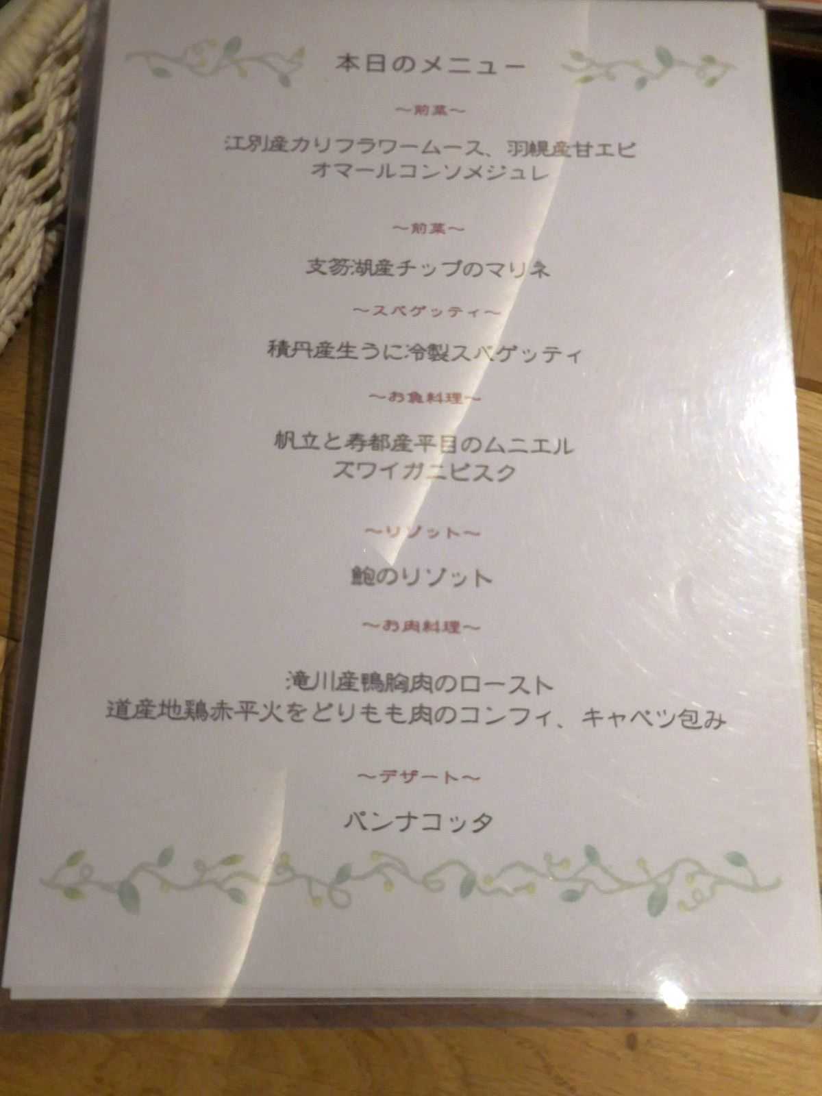 あっつい日が続きます。そんな中、高砂駅目の前のビストロエドナに晩ご飯を食べにやってきました。江別市高砂町41−23駐車場はお見えの前に3台分定休日:不定休地図はこちら。8800円のコースを予約しました。通常8品ですが、食べきれない恐れがあるのであらかじめ7品に変更してもらいました。メニューがこちら。カリフラワームースうまし。目が癒やされますね。積丹産ウニが抜群にうまい。パスタの量が少ないのも助かります。ズワイガニビスクはもちろんうまいんですが、ヒラメも香ばしくてほくほくです。肝のソースものっていて箸が止まりません。良い鴨です。ブラッティオレンジのジュレと甘夏が涼しげでパンナコッタとよく合います。シェフが一人で調理してると思うんですが、非常に品出しが早くって全部食べ終わっても1時間ちょっと。さすがですね。違う季節にまた来たいと思います。【送料無料※北海道・沖縄対象外】【代引払い不可】【ご家庭で手作りソバ打ち】めん打ち太郎 60cm 包丁付(そば打ちセット)(レシピ付)(16882-7)【7/1限定! 最大P6倍 & 最大2000円OFFクーポン!!】名人・高橋邦弘 こだわりのそば打ち入門 vol.1 【DVD】