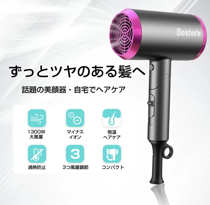 【77%OFF★クーポンで3,492円】 【楽天1位】 ヘアドライヤー 大風量 速乾 マイナスイオン ドライヤー 恒温 1300W 冷熱温風 3段階調節 ヘアケア 美容家電 髪質改善 ヘアードライヤー スピーディーイオンドライヤー 折畳み式 ドライヤ 旅行 軽量 送料無料
