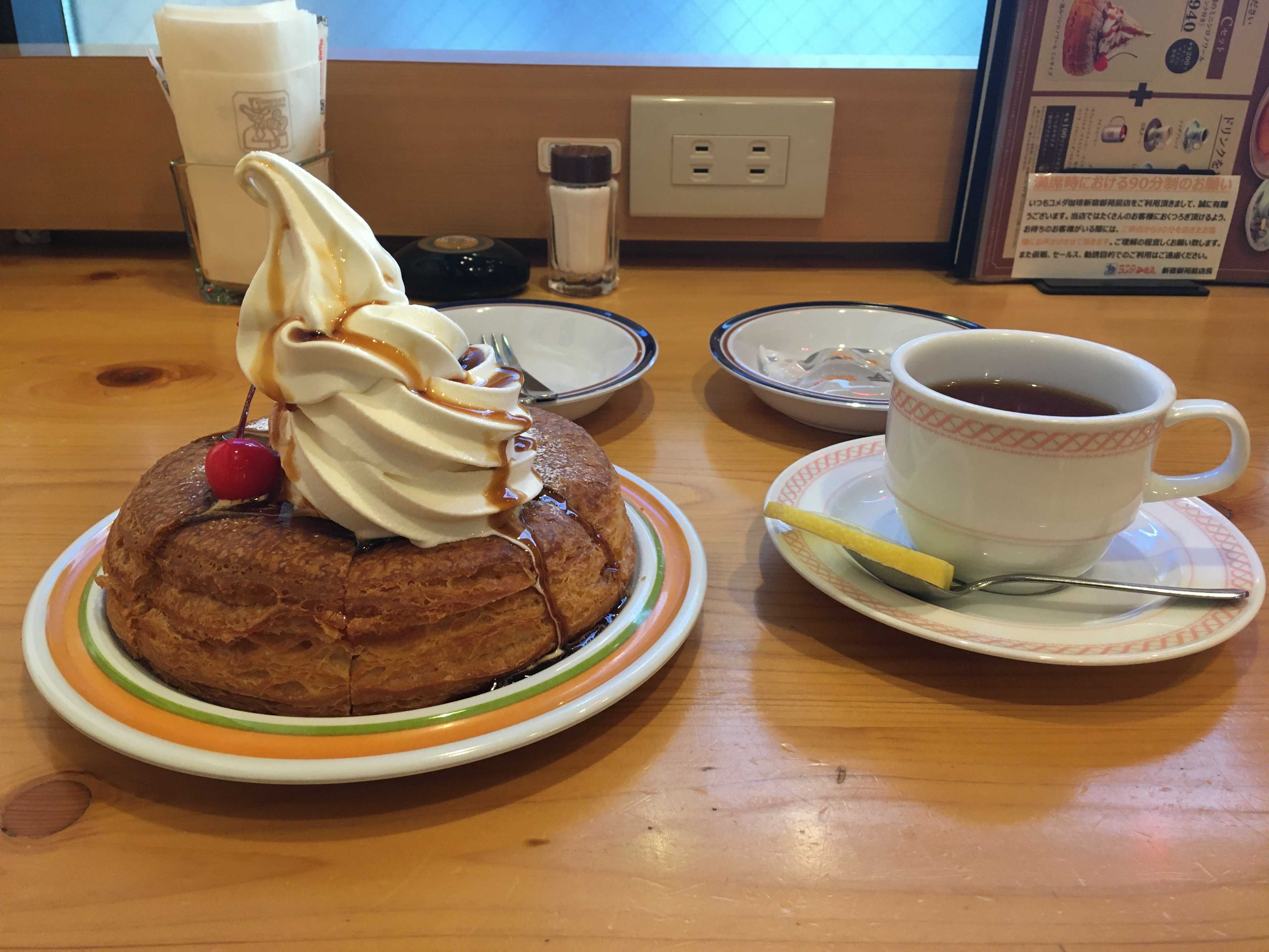 こちらはシロノワールのレギュラーサイズです。この写真を見ただけでもわかりにくいと思いますが、結構大きいです。コメダのフードメニューはこれ以外に色々ありますが予想以上大きいです。食べ切れるか不安になってしまいます。店内の雰囲気もいいのでガッツリ食べたい時などはおすすめかもです。