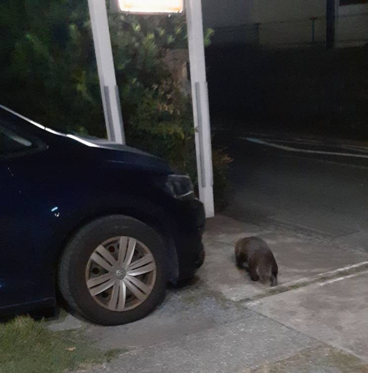 木曜日の夜中近く、最後の生徒のお迎えが来ていないかと1Fドアから外を見たら目が合った。多分、以前駐輪場で見つけた子。駐車場をゆっくり歩いて横切っていた。タヌキだった。急いでスマホ持って追いかけた。近づいても逃げない。まだ車通りがある道路を渡っていた。足を怪我しているのか、ゆっくりとしか歩かない。鳥獣保護法かなんかがあるので、タヌキを捕まえてはいけない。ゆっくりと住宅地の中に消えていった。ご存じない方のために…この地域はそんなに田舎ではない。高層ビルが立ち並ぶ都会でもないが、タヌキが歩いてる道路は朝夕は1時間に4本くらいバスが通る。100mくらい北側には片側4車線の国道がある。車や人通りもそれなりに多い。タヌキが事故にあったりせずに無事に過ごしてくれればいいが。