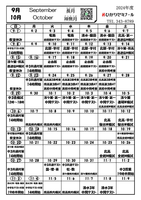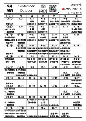 各中学・高校の定期テスト高校3年の模試10月末には中3共通テストが実施されます。10月の土日は共通テスト対策を行います。祝日の月曜は全て塾を開けます。