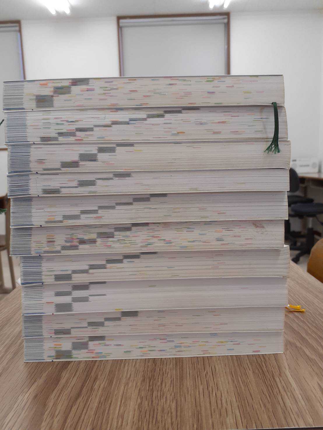 わかりにくいが、ページに付箋がたくさん貼ってある。