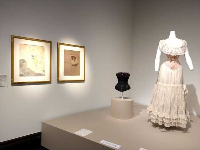 ロートレックのリトグラフ2点と超ウエストシェイプのドレス&コルセット。細すぎるー!