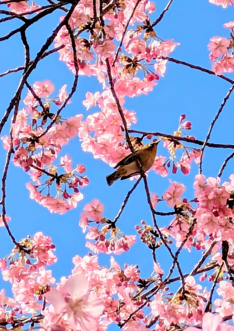 去年、ソメイヨシノのお花見を楽しませてもらった大横川は、江戸時代に造られた運河でいくつかの川や堀と交差して江東区と墨田区を流れていますが、川沿いの桜の名所はソメイヨシノだけでなく、河津桜が続くところもあります。テレビでも連日、河津桜名所のにぎわいが映し出され、我が家から徒歩圏内の大横川沿いの河津桜も咲き始めたという情報もありました。というわけで、本日のお散歩は大横橋を目指します。道すがら、Tちゃんに松田桜まつりに案内してもらって初めて河津桜を見た時のことを思い出しました。(過去ブログをチエックしてみたら17年も経ってました。)大横橋に到着。沢海橋方面は今にも開きそうながら、まだ蕾状態の木が多いのですが、スカイツリー方向、豊木橋から先は満開の木が多く、見物人も行き交っていました。日当たりにも左右されるんでしょうけど、遅咲き、早咲きがあるんでしょうかね。(河津桜は濃いピンク色で可愛くて華やか。♪)大横川には全部で40近い橋が架かっていますが、ソメイヨシノは豊木橋の次の茂森橋の先の川沿いに続きます。今年は暖かいから、きっと去年よりソメイヨシノも早いでしょうね。嬉しい花の季節がはじまってますね。
