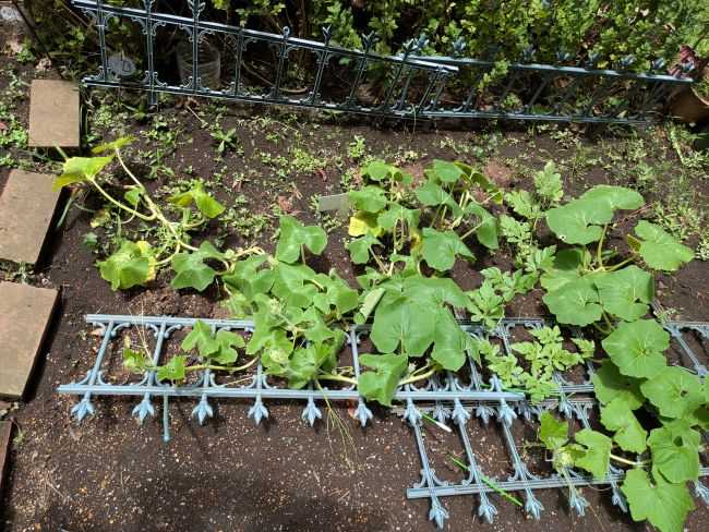 熱い、暑い夏がようやく終わったらしき今日この頃、時折ふく秋風を感じられるだけで嬉しくなって出かけたくなりますね。猛暑の間はエアコンざんまいの室内から出る勇気がなくて、目と鼻の先の健康センターでの週2ほどの運動もずっとさぼりました。散歩同様、これは私が休んでも誰にも迷惑はかからないからね。だから、暑さの中で外に出たのは、休むとほかの方に迷惑になるボランティアでやっているマンションエリアのお花の手入れと夕方の水やりくらいなものでした。ウイルス感染予防ではなくて日焼け防止にマスクまでかけた(めちゃアツイ!)いでたちで、なるべく日陰を選んだりしてね。そんな中、とっても楽しみなことがおこったのは7月17日のことでした。我々が畑と呼んでいる花壇の一隅にスイカとかぼちゃが芽を出して、ツルをのばしていたのです。誰かが種をまいたとか、苗を植えたとかではなくて、自然に出てきたというのです。「えーっ?!」ですよね。2年ほど前に亡くなられたボランティア仲間のNさんがご自宅のベランダでも植物を育てていらして、残されたたくさんの使用済みの土をご家族の方が「使えないかしら?」と持ち込まれたのは私も現場にいたので知っていましたが、その後、その土を畑に入れたそうで、そこから芽が出てきたらしいのです。この時すでにこんなに↓育っていましたが、まだ花は咲いていませんでした。「スイカやカボチャができたらスゴイよね~っ。楽しみぃ。」ってみんなで盛り上がりました。その後、花が咲いたのですが、実になる様子がなくて、誰かが「受粉させないと実にはならないらしい。」と言うのを聞いて、やりかたわからないしミツバチ頼み?でもミツバチなんて最近ここらへんで見かけないしなと半ばあきらめたころ、スイカが1つだけ実になったと聞いて、行ってみたのがほぼ1か月経った8月21日でした。それからはスイカを見に行くのが楽しみになりました。5日後(8月26日)ちょっと大きくなってました。更にその6日後(9月2日)、誰かがクッションを敷いてあげたらしい。9月4日サイズ感がわかるかと、サインペンを置いて撮影。9月9日9月13日9月18日9月23日少し前からもうあまり大きくなっている感じがないので、はたしてスイカって、いつ収穫するんだろう?とネットで調べたら、だいたい30日~40日後だと書いてあった。そして9月25日、夕方水まきのあと仲間3人でスイカを見に行くと、なんだか実が黄ばんできちゃったし、ツルも枯れていたので、ようやくツルを切って収穫。(黄色いのはかぼちゃの花)もうとっくに収穫時期が過ぎていたんじゃないかしら?。さてさて、このかわいい貴重なスイカどうしたと思いますか?隣の畑のコスモスとともに、スイカが芽を出すことになった土の所有者であるNさんのおうちにお届けして、仏壇におそなえしていただこうということになったのです。スイカの中がどうなっていたのか、切った断面を見てみたいとは思いましたが、あとで届けて下さった方から図らずも、Nさんの御命日が9月29日だったと聞いて、とってもハッピイエンドだにゃ、ってにんまりでした。スイカちゃんとNさん、楽しい夏の思い出をありがとにゃ~ん。