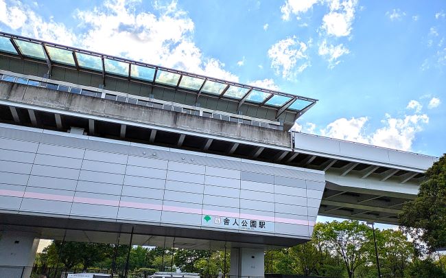 テレビ画面いっぱいにブルーがひろがる、ひたち海浜公園の広大なネモフィラの景色には、ずっと心惹かれていますが、茨城県はちょっと遠いので、私は都内のネモフィラ名所で我慢、我慢。花好きが集まっているマンションの花壇のお手入れボランティア仲間が、舎人公園にネモフィラを見に行ってきたと話しているのを聞いて「ネモフィラも見られて、前から一度、乗ってみたいと思っていた、舎人ライナーにも乗れる!♪」と大喜びした私、即実行に移しました。舎人ライナーは2008年に開業した日暮里から見沼代親水公園駅までの13駅を走り、ゆりかもめと同じ自動案内軌条式旅客輸送システムAGT(Automated Guideway Transit)の電車で、車輛も駅もデザインがゆりかもめによく似ていますね。ネットで調べたら、舎人公園では「花と光のムーブメント」というネモフィラのライトアップイベントの開催中で本日が最終日だとか。到着した時すでに16時を過ぎていましたが、祭日だし、ライトアップ目当ての人が多いでしょうから、人出はかなりありました。でもとっても広いので混雑感ゼロで開放的気分が充分あじわえました。画像は写り込んでしまった人を消しゴムマジックで消しています。普段は水が流れているんだと思うのですが、ライトアップイベント中は水の流れは止められて、道しるべみたいに沢山のライトがずっと噴水まで続いていました。 暗くなったら光る川がイルミネーションされた噴水池(イベント中は水なし)まで流れるような演出になっているみたいです。(good!)何て素敵な緑のながめ。(癒されるぅ)木立の向こうに大きな池。(のどかぁ)人の流れについて歩いて行ったら、ようやくネモフィラに行きつけました。やっぱり、ここだけは人が多いです。ネモフィラのモニュメントがあちこちにあって、きっと暗くなったらライトアップされるんでしょうね。ライトアップタイム(6時)までまだあと1時間ちょいありますし、お腹をへらした猫が待っているし、今日は花を見るのが目的で来たので明るいうちに帰ってイルミネーションはyou tubeで楽しむことに致しました。この日が最終日と言うことはネモフィラの真っ盛りはすぎていたのかも。ここも来年は見頃をチエックしてこなくちゃね。聞くところによれば、舎人公園のネモフィラは、2、3年前から始まったばかりだとか。ひたちは2002年に始めたそうなので、もう23年もたっているわけで、広さもさることながら、年季がちがいますね。舎人公園もきっと、だんだんと更に美しさがましていくのではないかしら。期待してま~っす。帰ってから調べたら、都内のネモフィラ名所は日比谷公園、舎人公園、昭和記念公園とありました。久しぶりに昭和記念公園にもいってみた~い!。※舎人公園https://www.tokyo-park.or.jp/park/toneri/index.html
