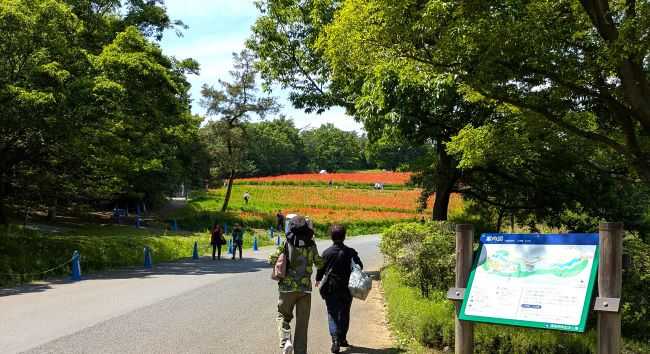 もう30年くらいは続いているんですが、最初は昭和記念公園にコスモスを見に行くことが多かったことから、コスモス倶楽部と名付けた高校時代のクラスメート3人組の一人Uちゃんから「久しぶりに会いましょうよ」とラインがはいりました。最近は美術館に絵を観に行って、近くのレストランで食事というコースが多く、今回も富士美術館の岩合さん猫写真展へということだったのですが、ネモフィラが見たかった私が花を見ながらアウトドアランチにしようよと、方向転換を提案してしまい、4年ぶりの昭和記念公園行きが実現しました。いつものように、入口で自転車をレンタルしました。何回もきているのに、公園のエリアマップがよくわからなくて、いつもUちゃんのあとをチャリチャリついていく私。時刻はもう昼時ということで、まずはUちゃんのおすすめで水鳥の池近くで自転車を止め、池の前の草原にシートを広げて久しぶりのアウトドアランチということに。立川駅ビルのデパ地下でお弁当を買ってきています。こういう時は勿論、私は家からワインを持参です。飲み慣れた安い白ワインをペットボトルに入れて、冷凍庫で凍らせたものが丁度解けて、冷え冷えの飲み頃です。割れないグラスも3人分持ってきているので、「かんぱ~い!」お腹が満たされたところで、花見物スタートです。シャーレーポピーの群生が見えてきました。パークトレインもやってきました。撮影スポットがいくつか用意されています。ポピーは真っ赤なものばかりですが、近づいてよく見ると、たまにピンク色などもまじっています。ポピーはヒナゲシ、コクリコ、虞美人草という別名も知られていますけど、名前だけ聞くと、全く別のイメージなのは私だけ?真っ赤なポピーの先に白い花が見えたので近くにいってみたら、カスミソウでした。白いカスミソウに真っ赤なポピーが似合っています。今年ポピーが咲いている花の丘は4年前に来た時には黄色いコスモスの丘でした。(ネット情報に寄れば、去年はこの丘にネモフィラが一面にひろがっていたようですね。)この時期の一番の見頃の花はポピーのようですが、私の目的はやっぱりネモフィラです。「ネモフィラはいずこ~?」って、聞いてみたら、今年はみんなの原っぱの周りの西花畑だとか。樹齢100年を超えているらしいシンボルツリーがあるみんなの原っぱに到着。一番の見頃時期はだいぶ過ぎてしまった感が否めませんが、まだなごりにはなっていないみたいで、念願のネモフィラの海に到着。船も浮かんでいますよ~。天気に恵まれて青空&ネモフィラの景色はにゃんとも癒し~!。ついに、都内のネモフィラ三大名所、全制覇でーすっ。日比谷公園<舎人公園<昭和記念公園とだんだん面積がひろがったネモフィラの群生が見られ、私にとって、2025年はネモフィラ記念年だにゃ~。4年ぶりのサイクリングも楽しめて、帰りは噴水のあるカナール(造園用語で「修景手法のひとつで細長い直線水路」)エリアを眺めて楽しかった1日の名残りを惜しみます。ここを見ると、20年くらい前のイルミネーションツアーとして、ここでシャンパンツリーを見たことを思い出すな。また、私はまだ一度も紅葉シーズンに来ていないので見たことないのですが、あのきれいに四角く刈り込んだ銀杏の並木は勿論の事、このあたり一面黄色一色となる晩秋のながめがまた格別のようですね。(公園の公式サイトに画像がありました。)昭和記念公園はいつ来ても、その時々で違う花や景色が楽しめて、大スキ。※昭和記念公園公式サイトhttps://www.showakinen-koen.jp/